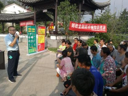 金融安全宣传上门。在收粮点、村委会等重要场所张贴金融业务及金融安全宣传画,开展以反假币、预防网上金融诈骗、远离非法集资为主题的金融安全进乡村活动,结合小型网沙、邮政业务等开展安全讲座和有奖竞答,提高大家的安全意识,引导大家将夏粮款存放到邮政等合法金融机构。