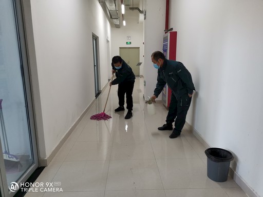 合肥邮区中心局设立往来湖北邮运司机隔离区,保证邮件运输安全。图为工作人员正在对隔离区进行消毒。