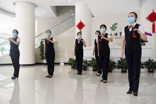 图为该分行网点员工用快板表演节目。这些节目经过录制后,通过微信小视频群发给广大客户。 □海南记者 梁磊 摄影报道