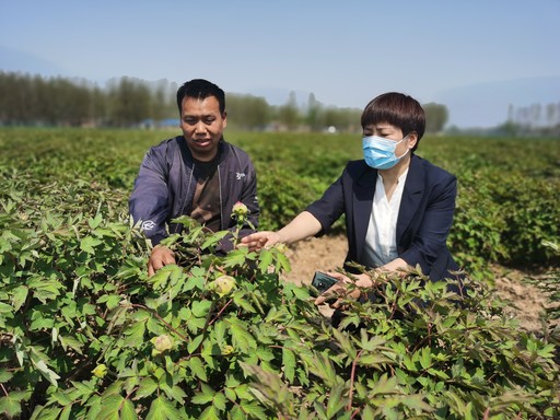 4月,牡丹花盛开,素有“牡丹之都”之称的山东省菏泽市沉浸在花的海洋中。为助力牡丹种植业发展,邮储银行推出了“家庭农场”“亲情贷”“春耕贷”等多种贷款,菏泽市分行积极推行“三农”信贷业务,为牡丹种植户解难题、添助力。了解到种植户赵天龙有牡丹种植方面的资金需求,菏泽市分行克服疫情影响,从接受线下申请、收取资料到上门调查、完成评估报告,3天时间完成放款,跑出了信贷业务的“加速度”。图为菏泽市分行客户经理现场调查,为牡丹种植客户提供优质、便捷的服务。 □陈平起 摄影报道