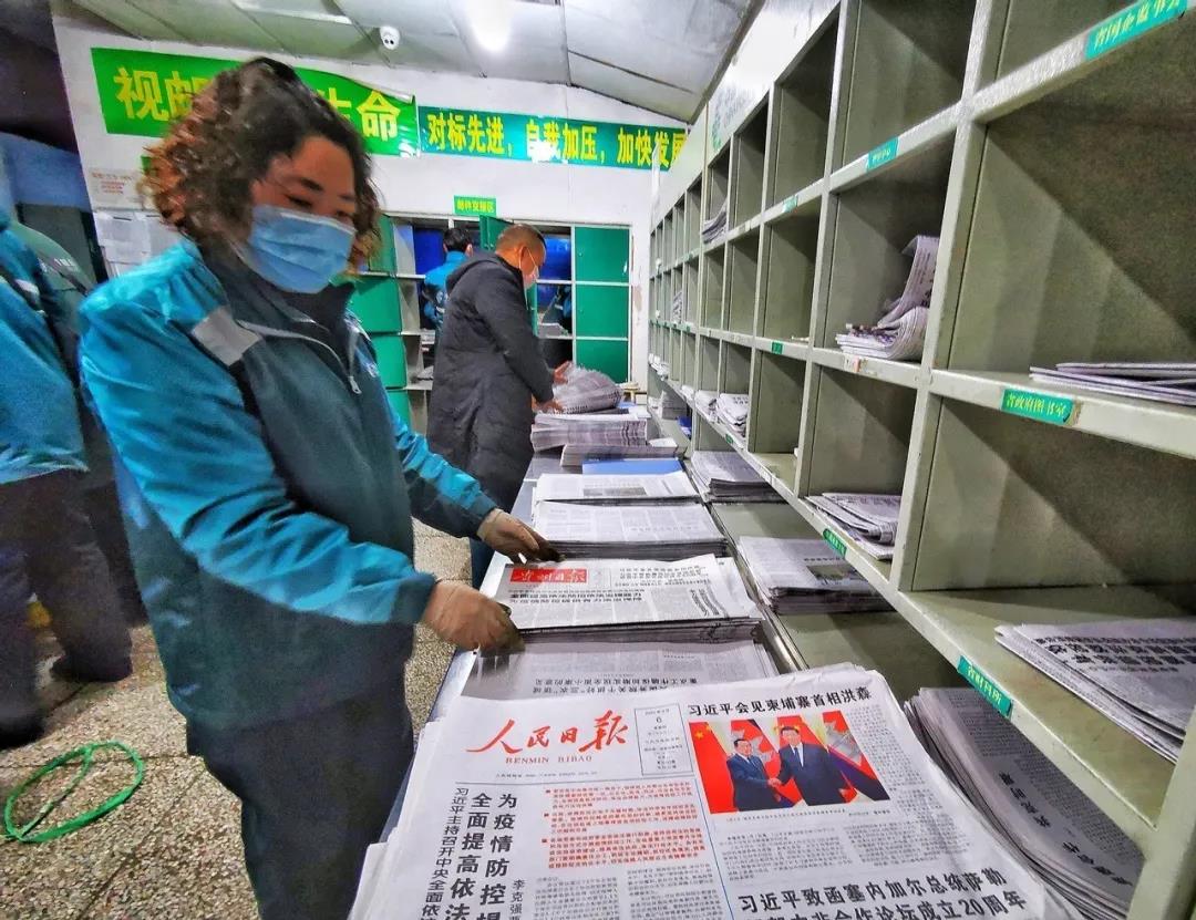 王明霞是贵州省贵阳市云岩区邮政寄递事业部贵开路营业部的投递员,她在新型冠状病毒肺炎疫情形势严峻的阶段依然奔走在报刊包裹投递的第一线。2月6日一上午,她投递了1100多份报纸。