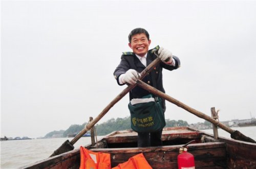 洪泽区邮政公司老子山邮政支局支局长兼投递员唐真亚就负责这片水域。21年间,唐真亚一桨一桨划出了30万公里的“水上邮路”,投递报刊126万余件、信件10.74万件,无一差错,被湖区渔民亲切地称为“大湖鸿雁”。唐真亚说,“选择了投递就要干一辈子。”因为一个人、一辈子,专注做好一件事就够了。
